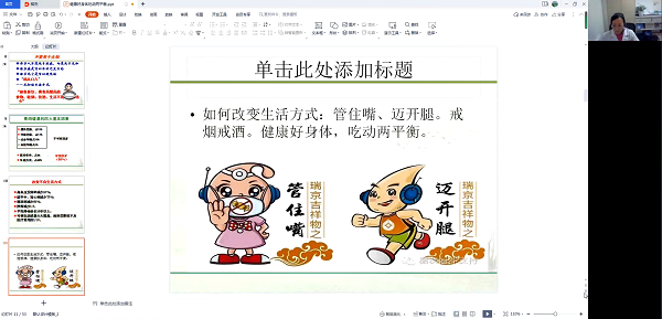 3月8日,一場(chǎng)線上健康知識(shí)講座拉開(kāi)了序幕。公司特邀長(zhǎng)江委長(zhǎng)江醫(yī)院白俊芬主任以《健康好身體,吃動(dòng)兩平衡》為題,從飲食、運(yùn)動(dòng)等方面向大家傳授健康知識(shí),叮囑大家要調(diào)整飲食結(jié)構(gòu),合理安排體育鍛煉,這樣才能擁有一個(gè)健康的身體,更好工作,幸福生活。